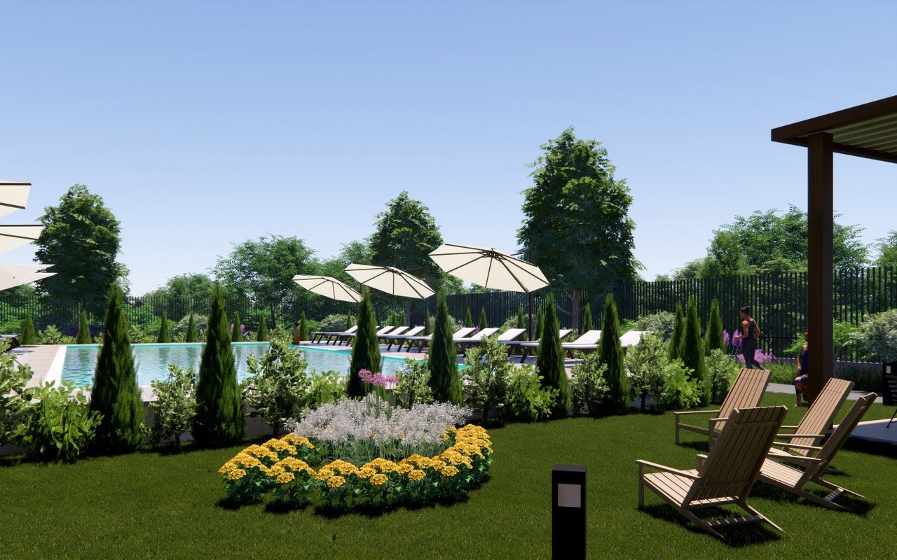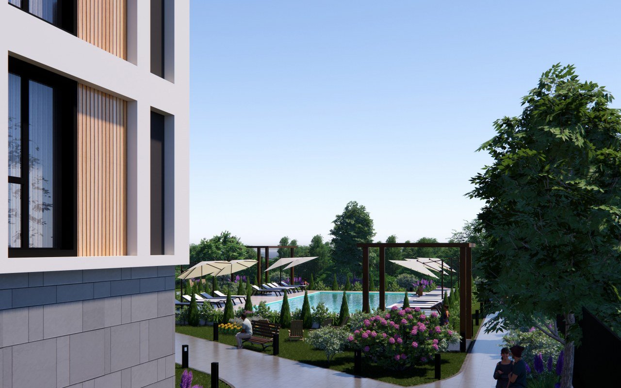 Yaz aylarının keyfini çıkarabileceğiniz modern açık yüzme havuzu.
