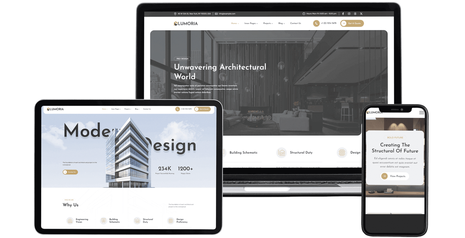 Experience seamless design and flawless performance across desktops, tablets, and smartphones. Lumoria is fully responsive, ensuring your architecture portfolio looks stunning and functions perfectly.